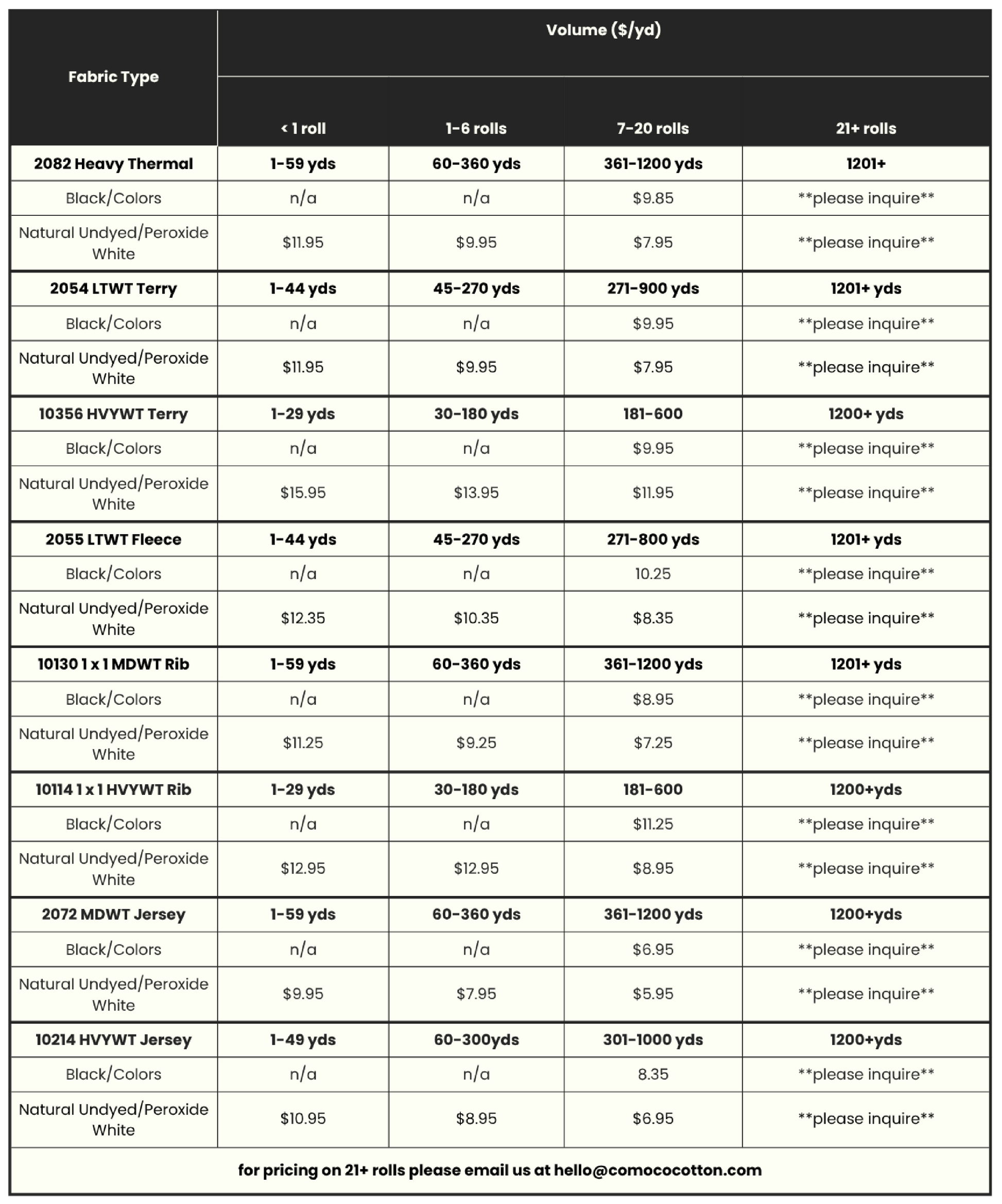 Every yard of COMOCO fabric is grown, processed, and finished in North Carolina. COMOCO is proud to be the purveyor of the lowest carbon emission fabric in the US.